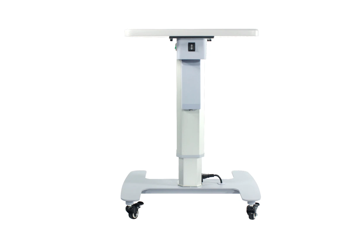 Mesa eléctrica HD-18A Compacta y portátil. Ocupa muy poco espacio. La base de metal la hace estable y duradera para su uso. Las ruedas de alta calidad proporcionan un movimiento seguro y fácil. Una toma de corriente justo debajo de la mesa para una fácil conexión al equipo.